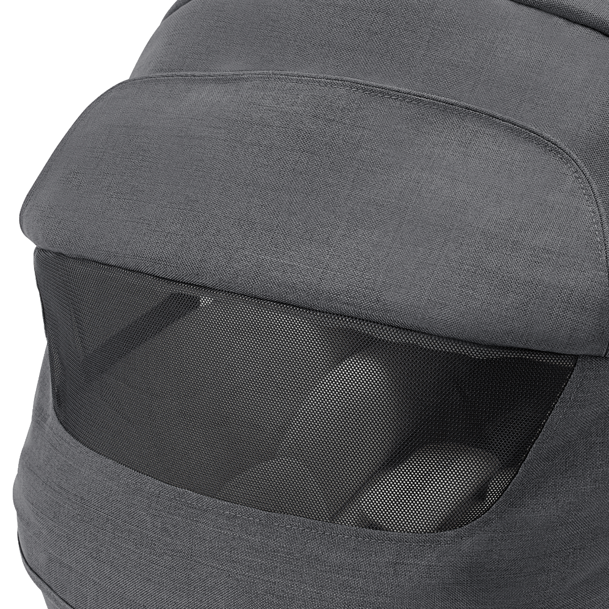 • Full coverage, UPF 50+ canopy with peek-a-boo window for checking in on baby