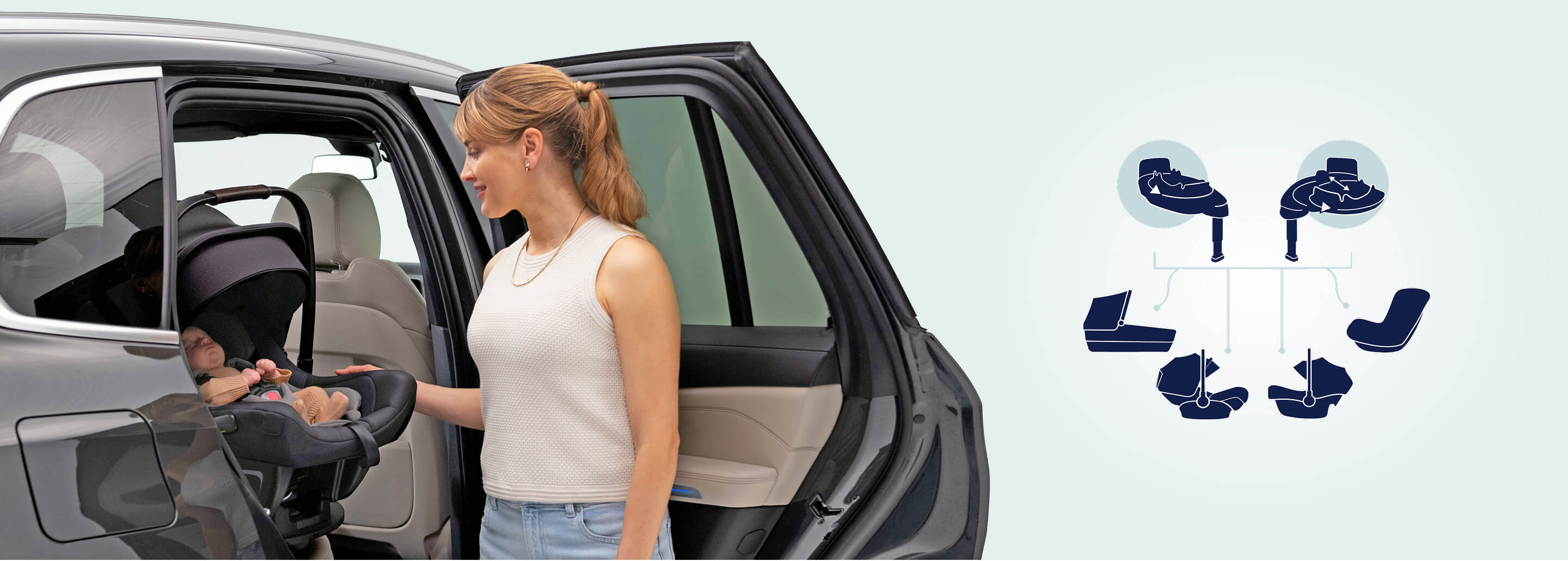 A modular system offering two 360° rotating base options and a range of infant and convertible car seats built for flexible travel during their first four years.