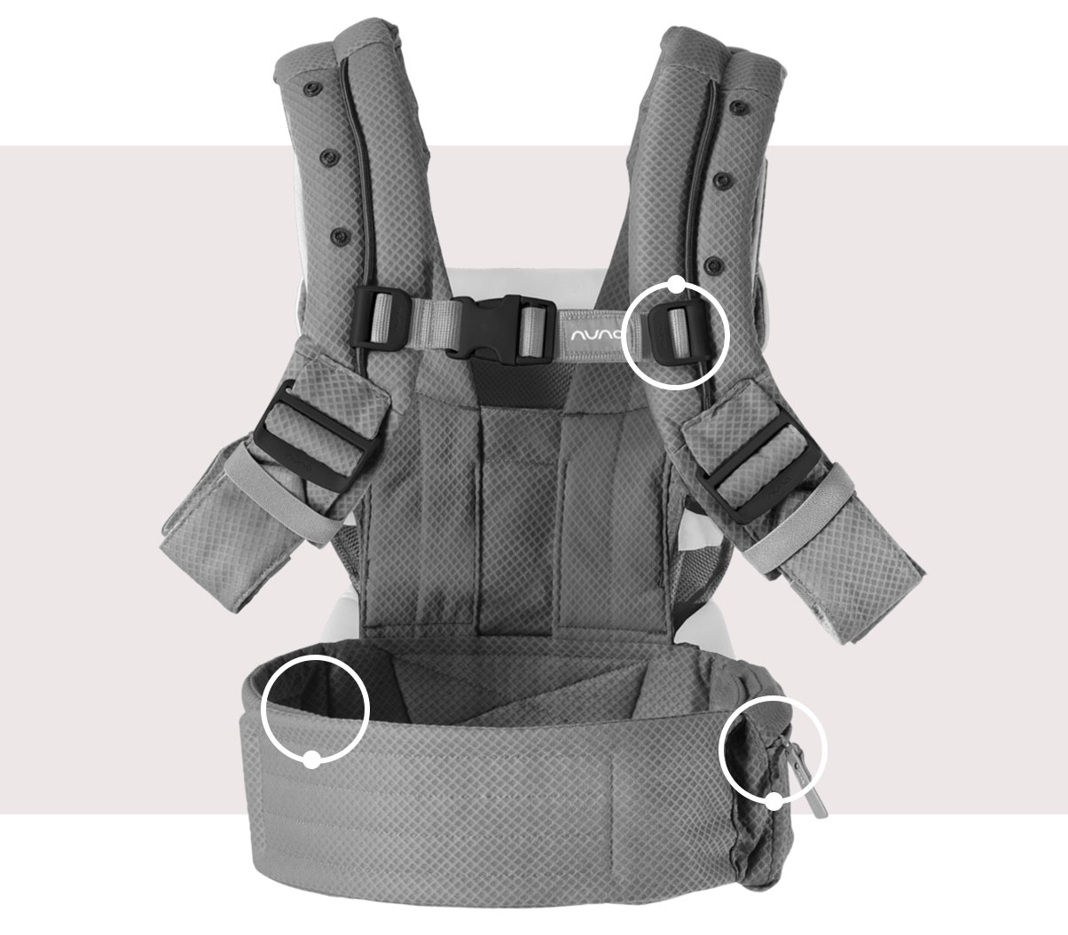 - All-over comfort from even distribution of baby’s weight thanks to padded shoulder straps and a wide secure waist belt.