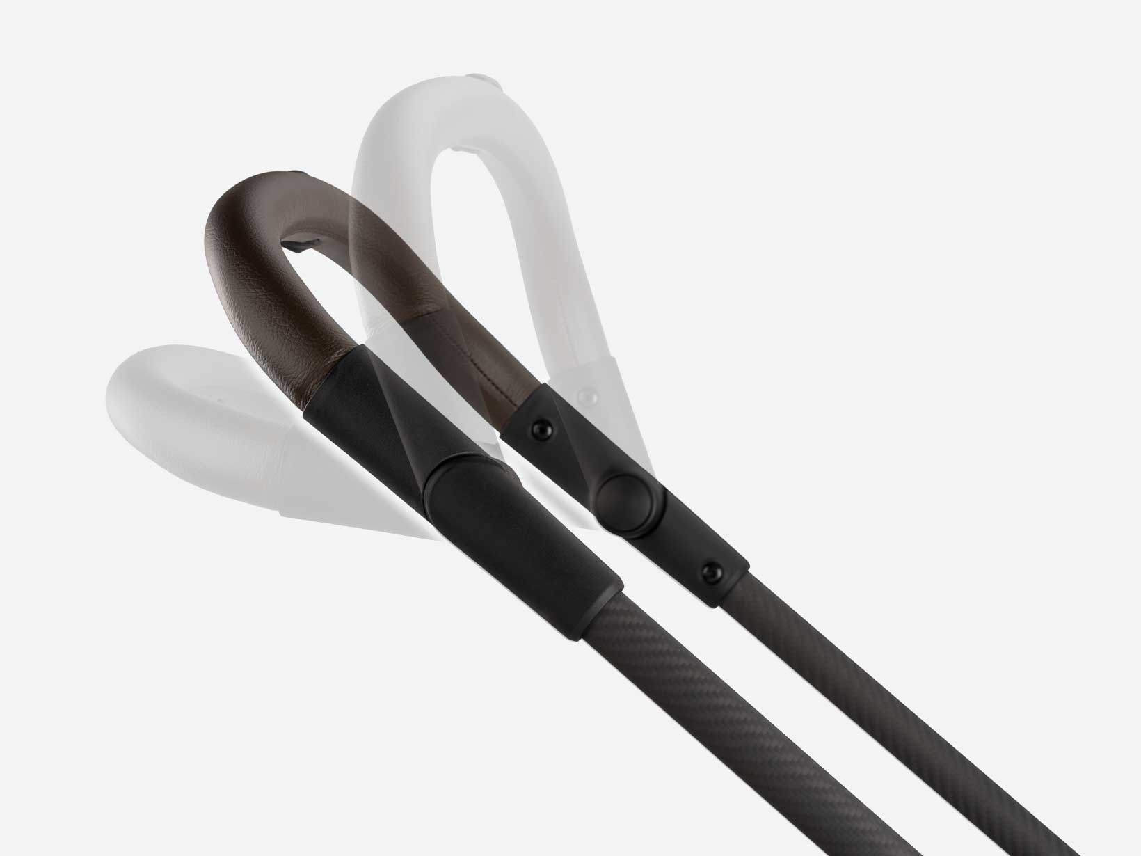 - Luxe leatherette accented pushbar and armbar add style to your strolls