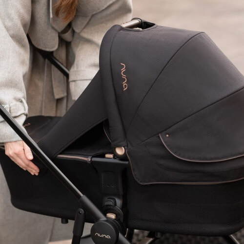 The UPF 50+ canopy, Nuna's iconic Dream drape™, and the included rain cover provide added protection from the elements and lovely, uninterrupted naps. Integrated memory release buttons and a hand-sewn leatherette carry handle make for a simple detach from the pushchair frame–because new parents deserve snuggles not struggles.