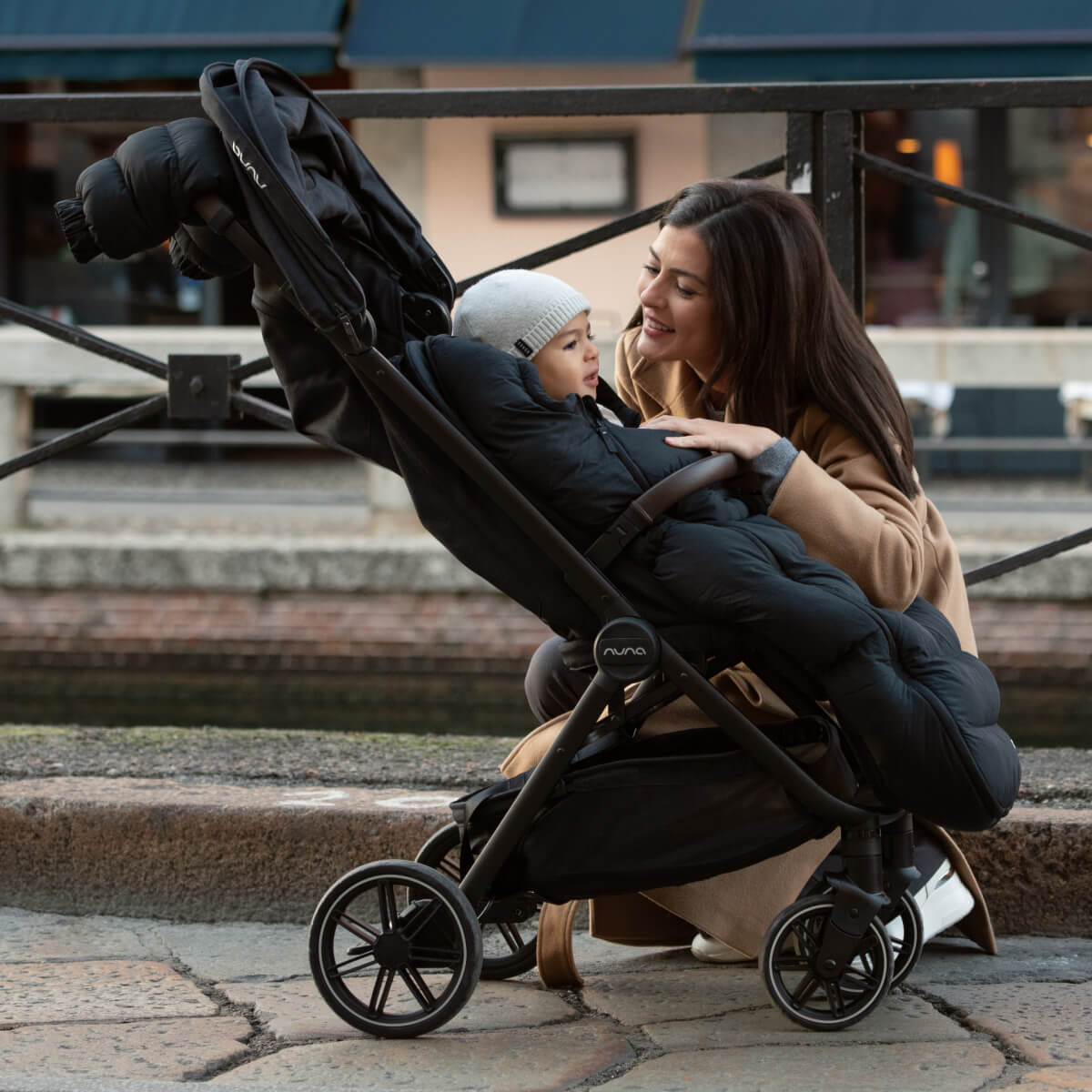 The Winter stroller set is a must-have accessory that fits all Nuna strollers and includes an ultra-plush footmuff for baby and matching mittens for you. Consider them a warm, wearable hug as you go about your day together.