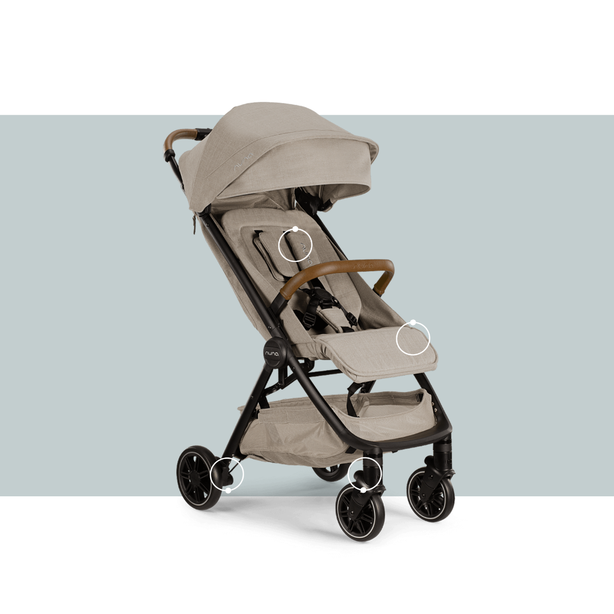 Out around town, on a whirlwind weekend trip, or exploring faraway places—an extra hand is always helpful for any parent. At the touch of a button on the pushbar, the Nuna TRVL pushchair folds itself into a compact package that stands on its own — giving you the convenience you need.