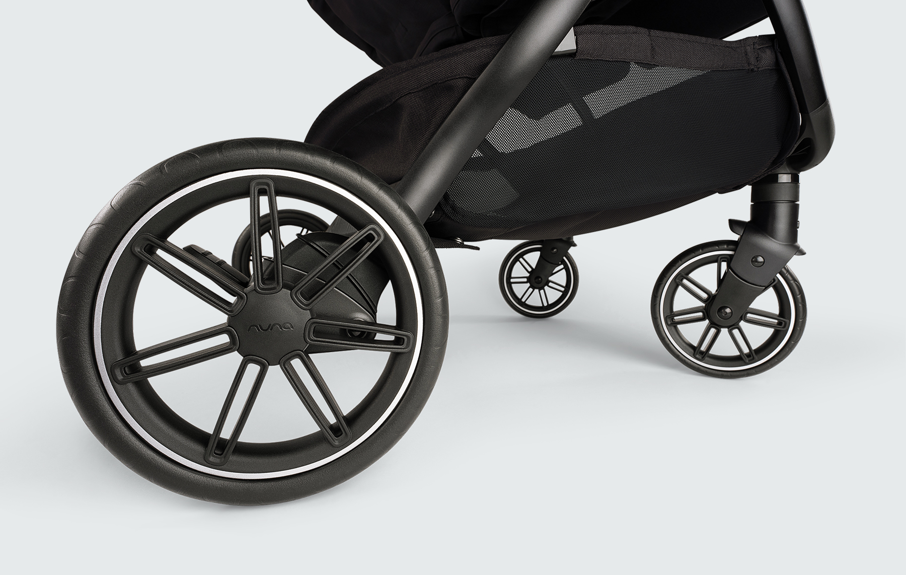 - Front swivel wheels with swivel locks for more comfortable strolls on uneven terrain
